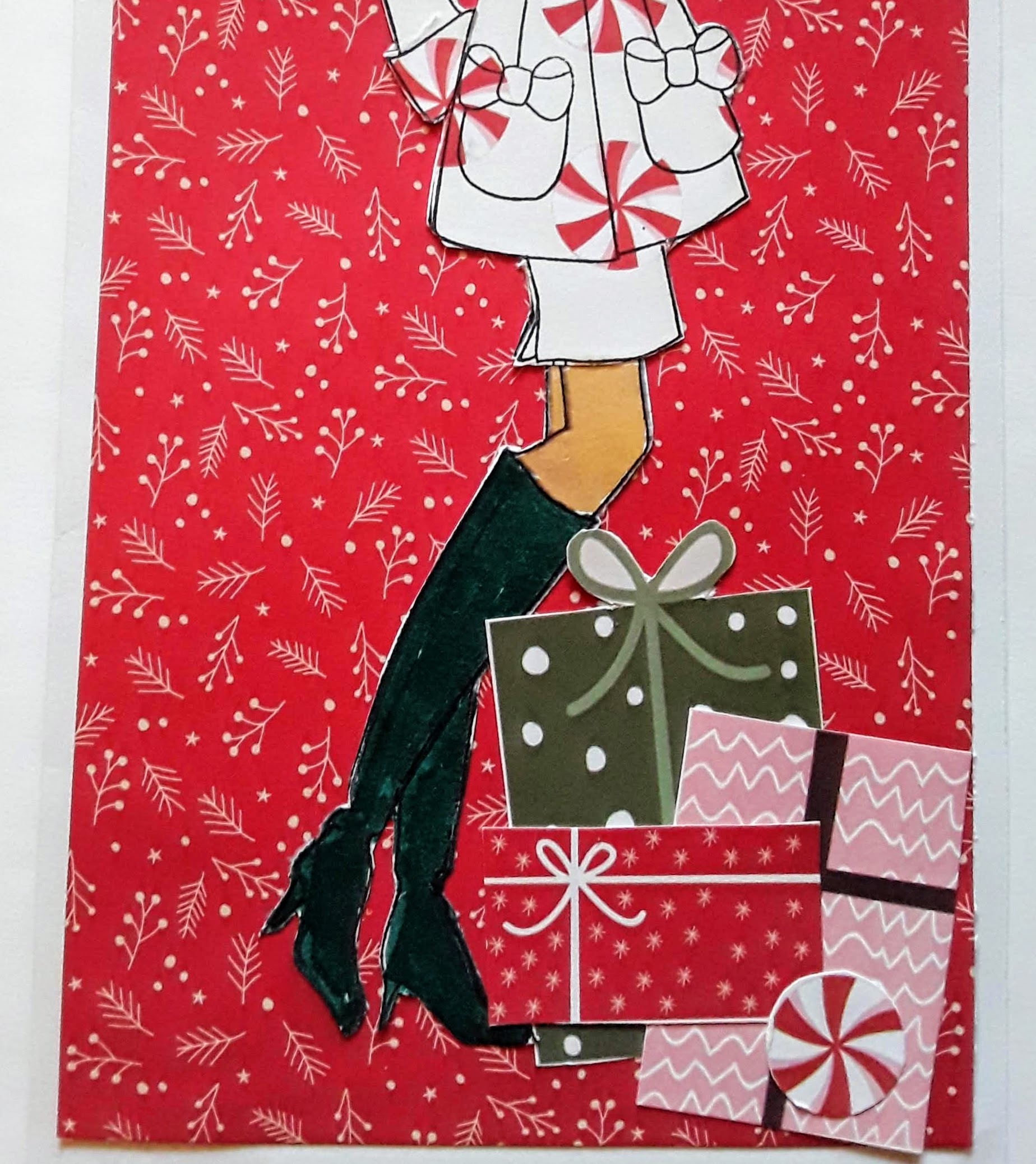 Happy holidays! I just love these Julie Nutting doll stamps. So I bought another one called, Jessi." She is stylish and ready for the holidays and winter. I bought this set from Scrapbook dot com. She is about 7.5 inches long and perfect for traveler's notebook pages and slimline cards.